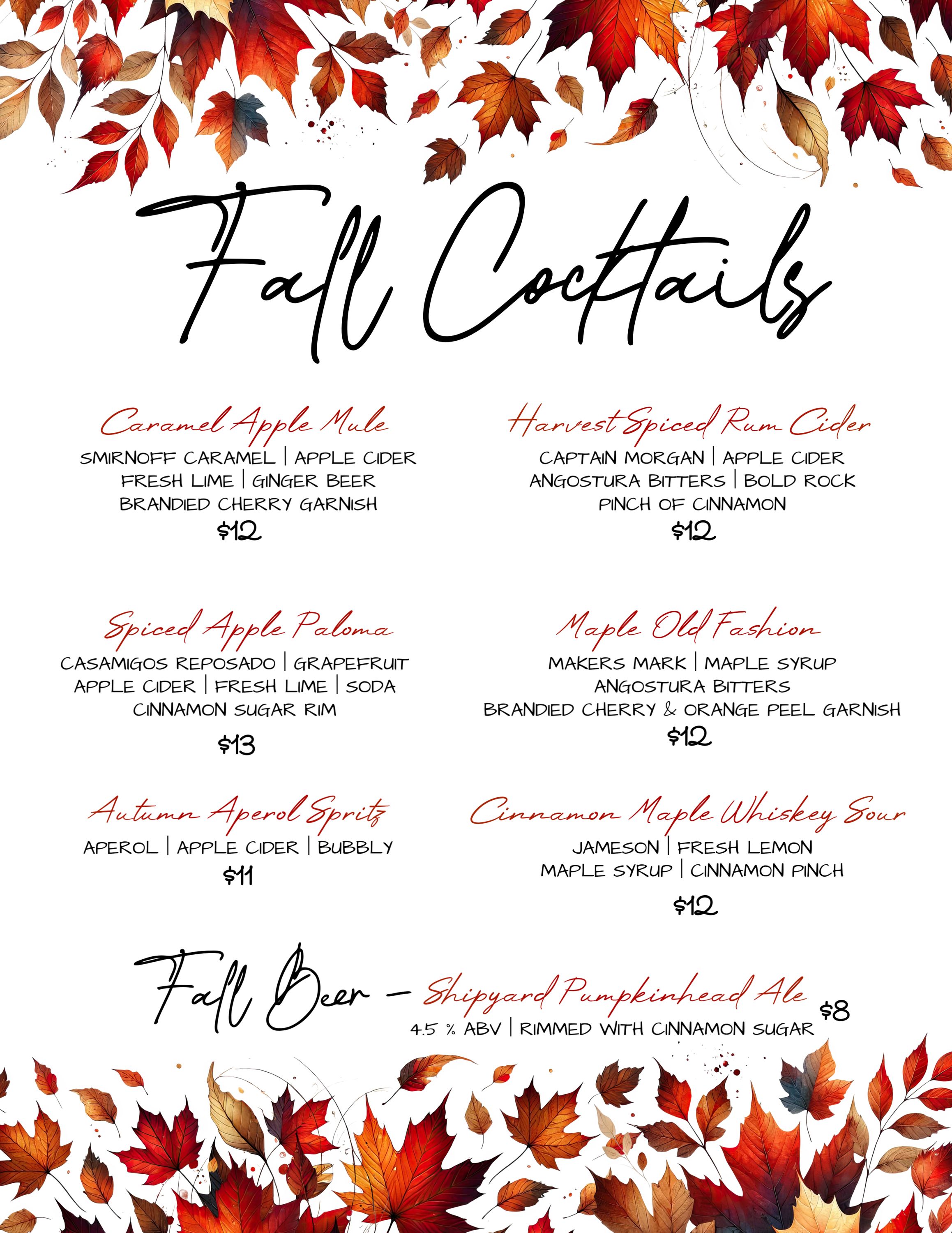 Fun Fall Cocktail Menu!