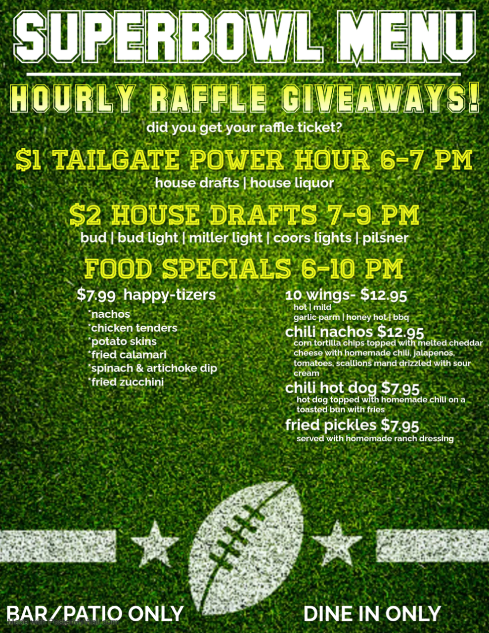 Whether you’re here for the football, the commercials, or the giveaways, this is the place to be. Grab your crew and let’s make game day unforgettable!